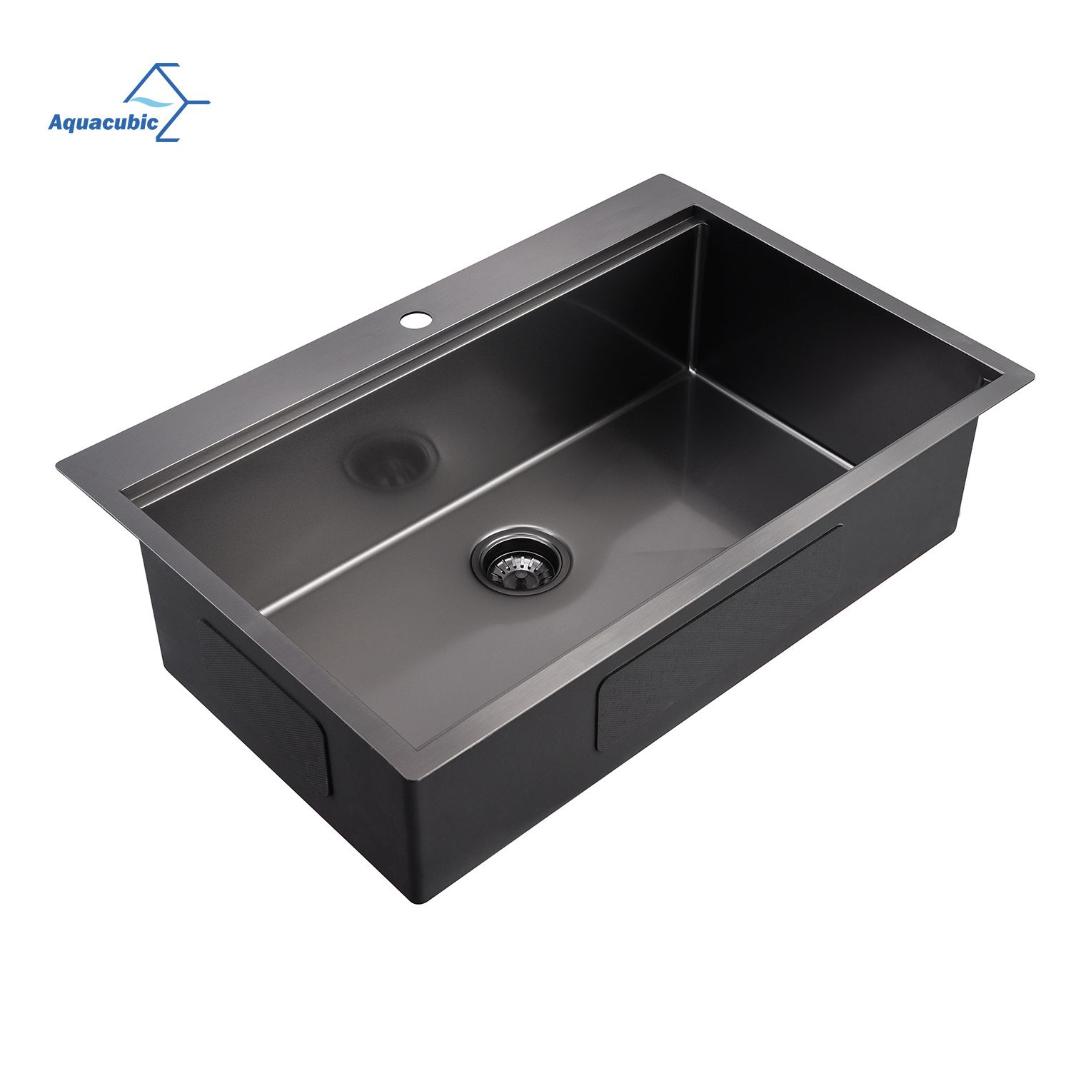 Aqucubic Gunmetal black handmade 16/18 Gauge 304 Stainless Steel Top Mount Single Bowl Kitchen Sink with ledge Aqucubic Gunmetal black handmade 16/18 Gauge 304 Stainless Steel Top Mount Single Bowl Kitchen Sink with ledge Aqucubic Gunmetal black handmade 16/18 Gauge 304 Stainless Steel Top Mount Single Bowl Kitchen Sink with ledge
