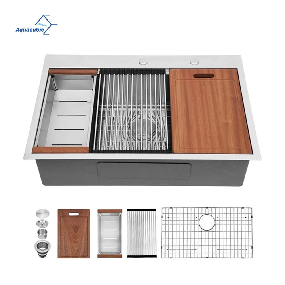 Aquacubic Cupc Luxury 16 Gauge 304 Stainless Steel Single bowls Drop In kitchen sink with drainboard