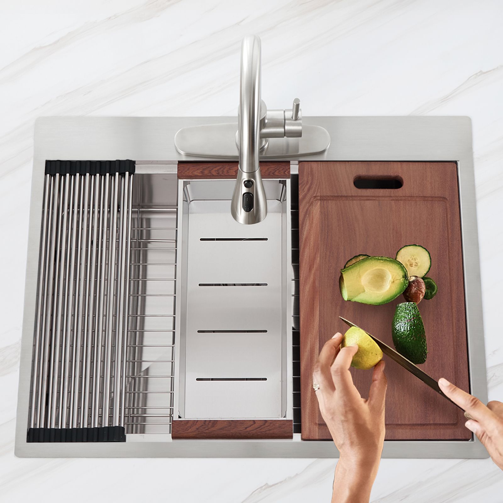 2.Easy clean-up: With workstation sinks, you don’t have to worry about most of that when you can do your washing, chopping, and even straining over the sink. It keeps your workstation sanitary and makes less mess for an easy clean-up.