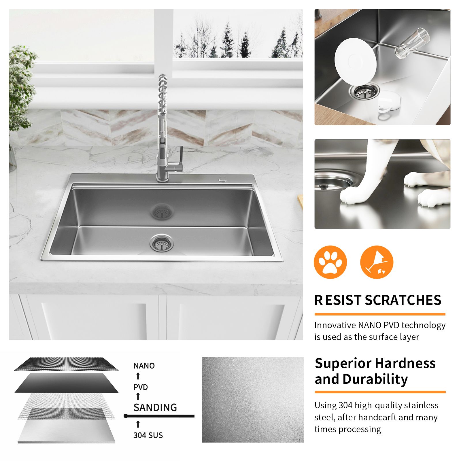 Aqucubic Gunmetal black handmade 16/18 Gauge 304 Stainless Steel Top Mount Single Bowl Kitchen Sink with ledge Aqucubic Gunmetal black handmade 16/18 Gauge 304 Stainless Steel Top Mount Single Bowl Kitchen Sink with ledge Aqucubic Gunmetal black handmade 16/18 Gauge 304 Stainless Steel Top Mount Single Bowl Kitchen Sink with ledge