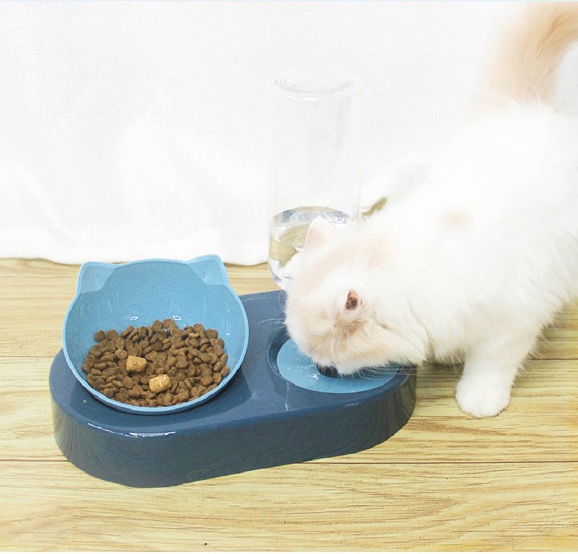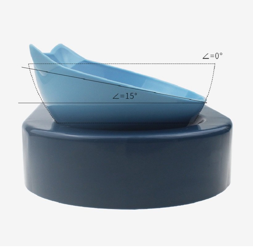 Automatic water dispenser with 15° Tilted designed food bowl makes pets more comfortable and convenient to eat, large oblique rim reduces cat food dropping. This design protect the pet's cervical spine and help release the pressure on the pet's neck which helps to avoid future problems with the spine or digestive system protect the cat's health.