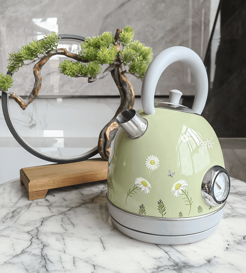 SKU: PS3018N2Ta 1850W Electric kettle, instrument thermometer kettle, flower watermark painting kettle rapid boiling water heater SUS304 LED lamp capacity 1.8L wide outlet design water filter spout can add water design high security without BPA wire storage base automatically closed and dry cooking protection