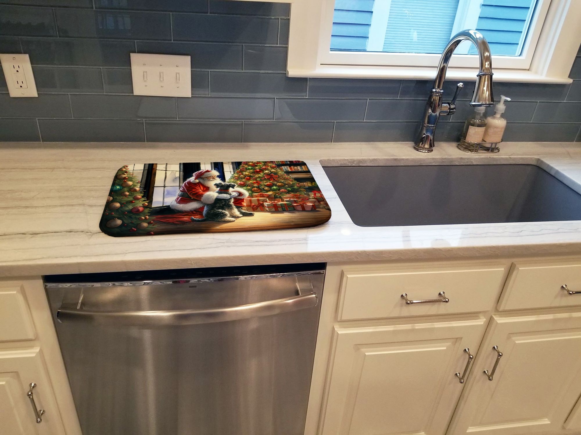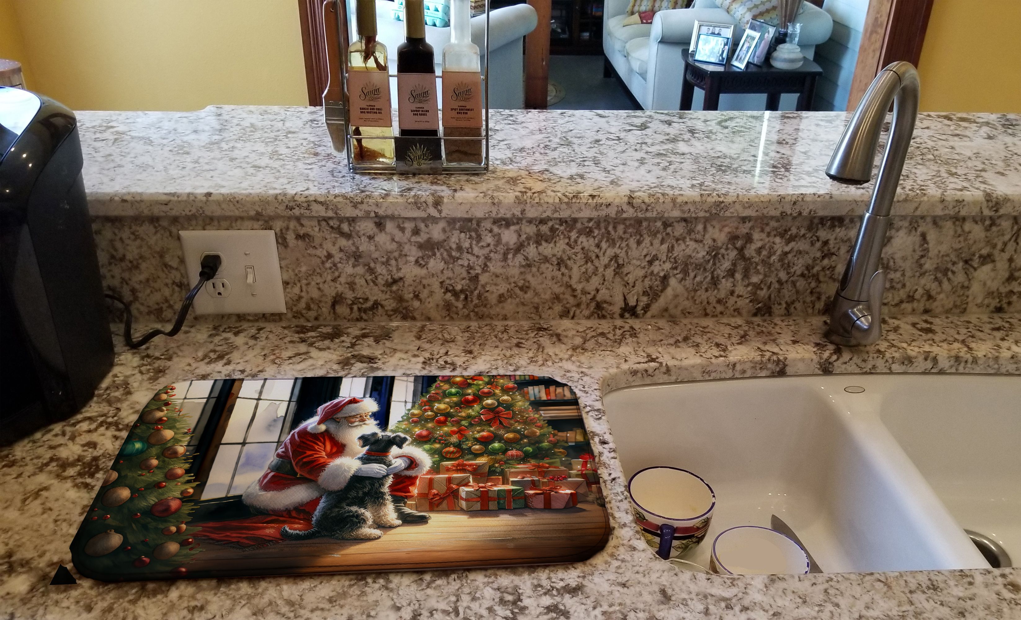 Schnauzer and Santa Claus Dish Drying Mat Absorbent Dish Drying Mat Pad for Kitchen Counter Dish Drainer Mat for Countertop, 14 x 21", Multicolor