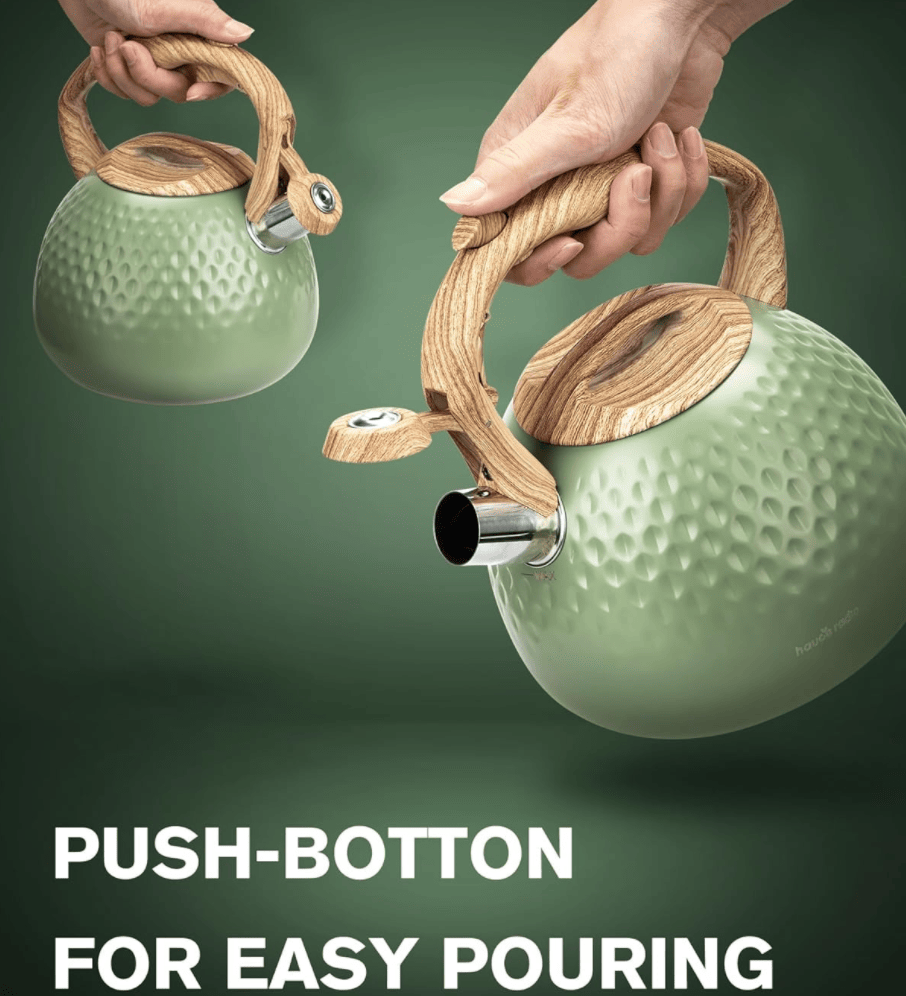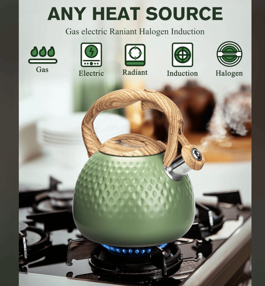 Big Whistle Kettle: This whistle teapot has a tight lid that keeps steam in the hot teapot for quick heating and reminds you with a whistle after the water is boiling to prevent the kettle from boiling dry.