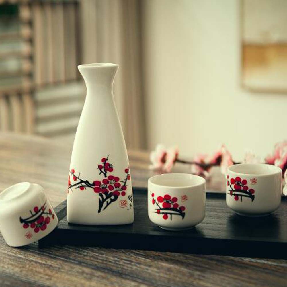 5 Piece Japanese Sake Set Handmade Ceramic Wine Cup Wine Pot, Plum Blossom 5 Piece Japanese Sake Set Handmade Ceramic Wine Cup Wine Pot, Plum Blossom