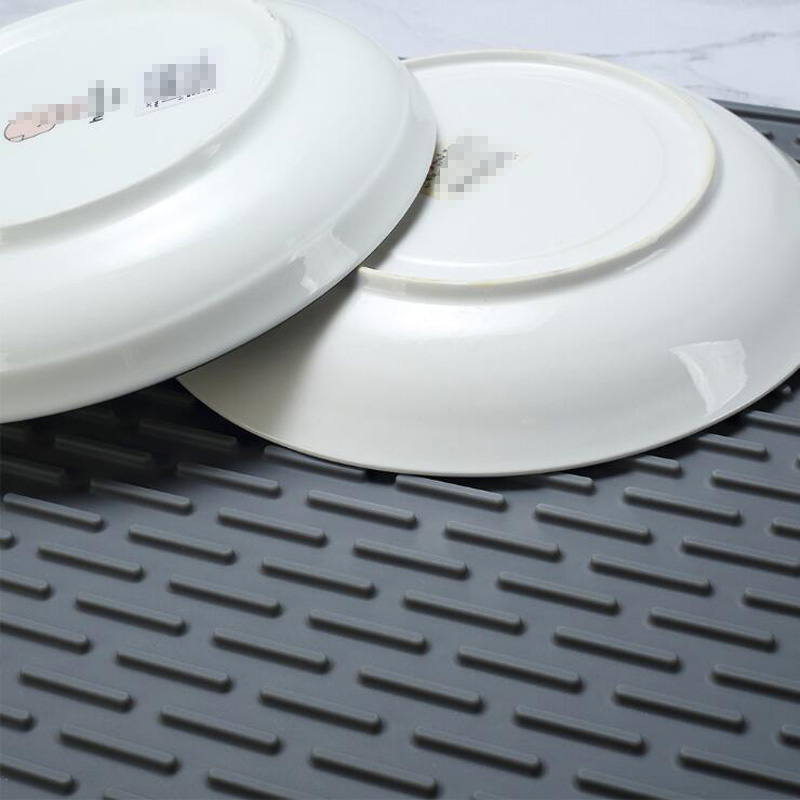 This dish dry mat is made of food grade silicone which is soft, waterproof, heat resistant, non-slip etc.